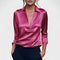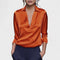 Acabamento Luxuoso em Cetim: Confeccionada em cetim de alta qualidade, a Blusa Premium Decote em V oferece um brilho suave e elegante que eleva instantaneamente qualquer look. Sua textura sedosa é macia ao toque, garantindo conforto durante todo o dia.